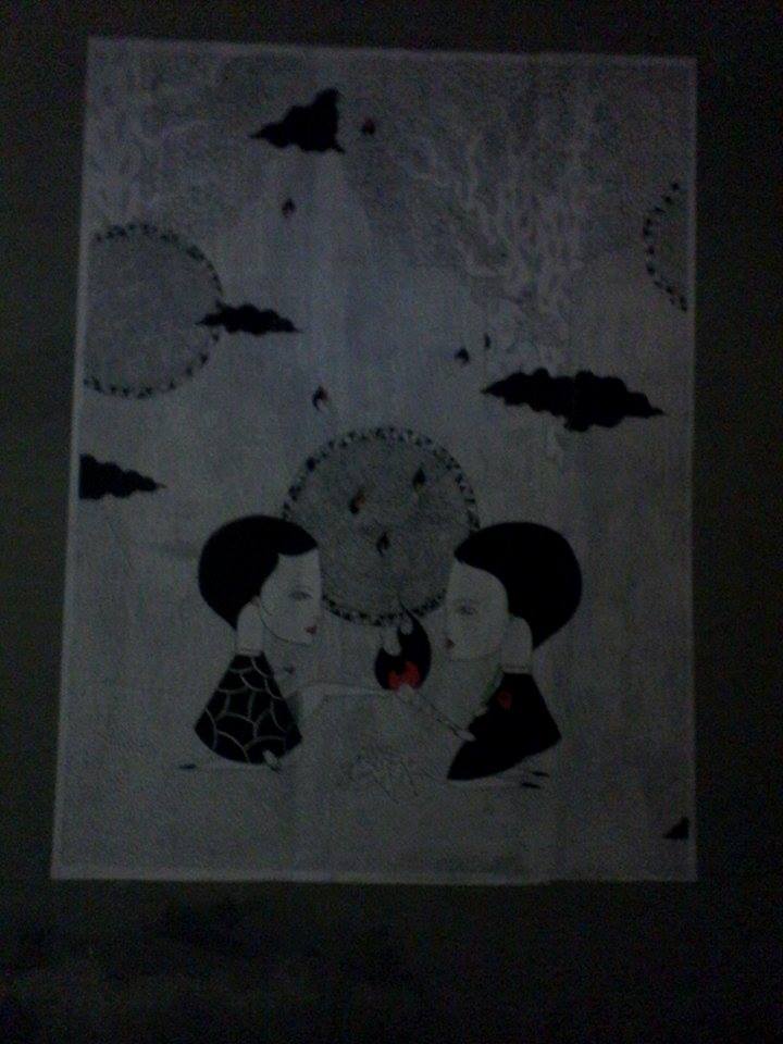 Il y a eu quelques heures de découpage, plutôt pas mal de quelques, des taches sur les impressions parce que découper trois mètres sur un lit et colorier sur du mou ca équivaut à manier des brindilles avec des gants de boxe.